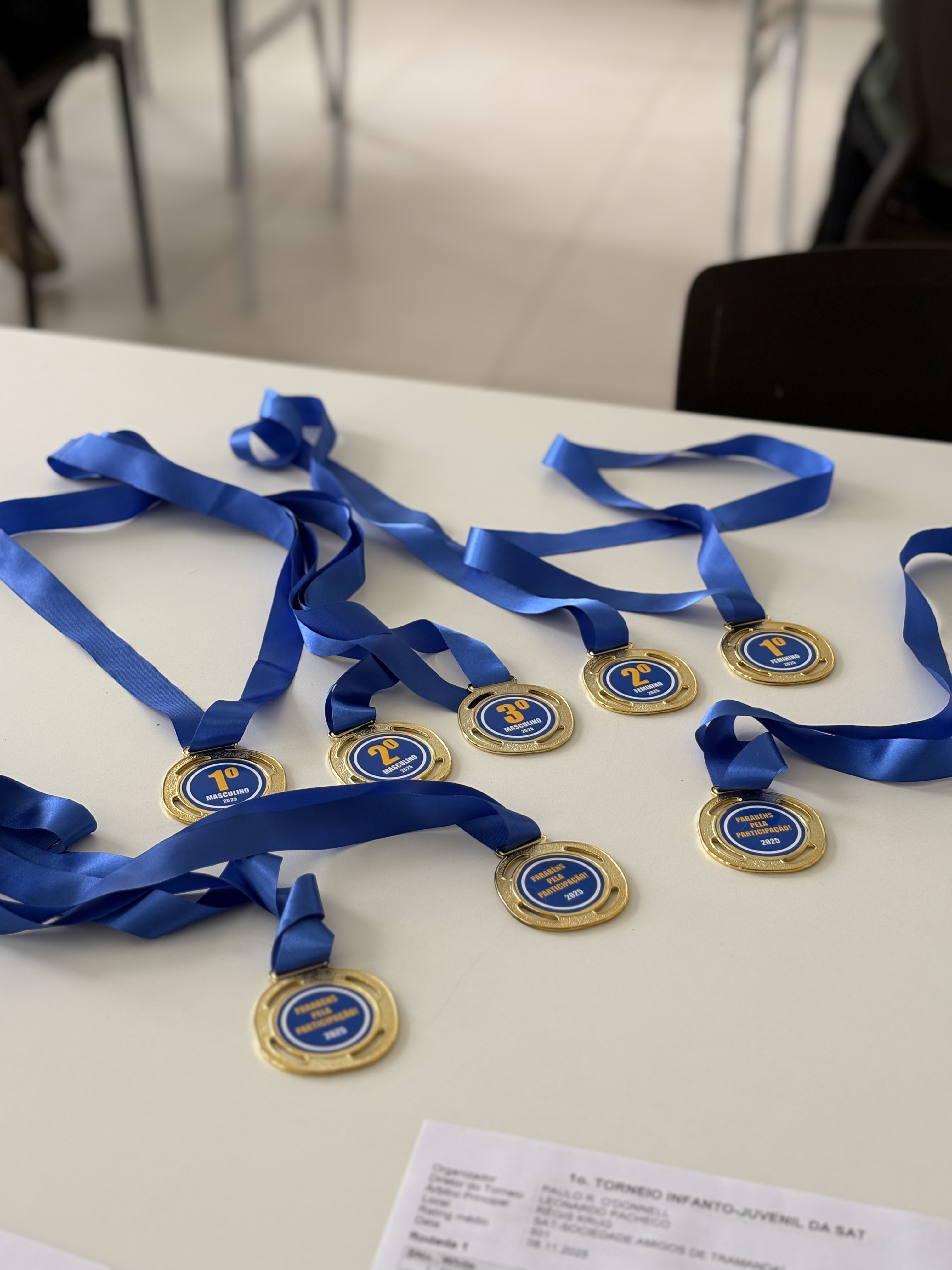 Com o intuito de prestigiar a valorosa evolução dos alunos mirins e prepará-los para os torneios de verão, a SAT promoveu no último sábado, 8 de novembro, na sala de reuniões, o seu 1º Torneio Infantil de Xadrez. Além da participação dos pequenos, destacamos a presença vibrante de pais e responsáveis que fizeram questão de acompanhar de perto e vibrar com seus pequenos a cada resultado! Confira a classificação final do campeonato: